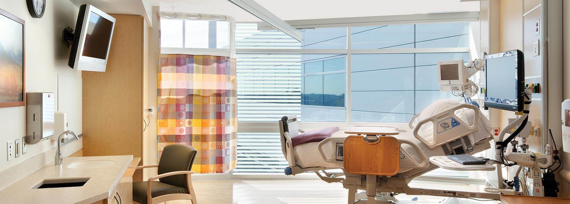 Privacy curtains professionally installed in hospital systems and medical centers right here in the Pacific Northwest!